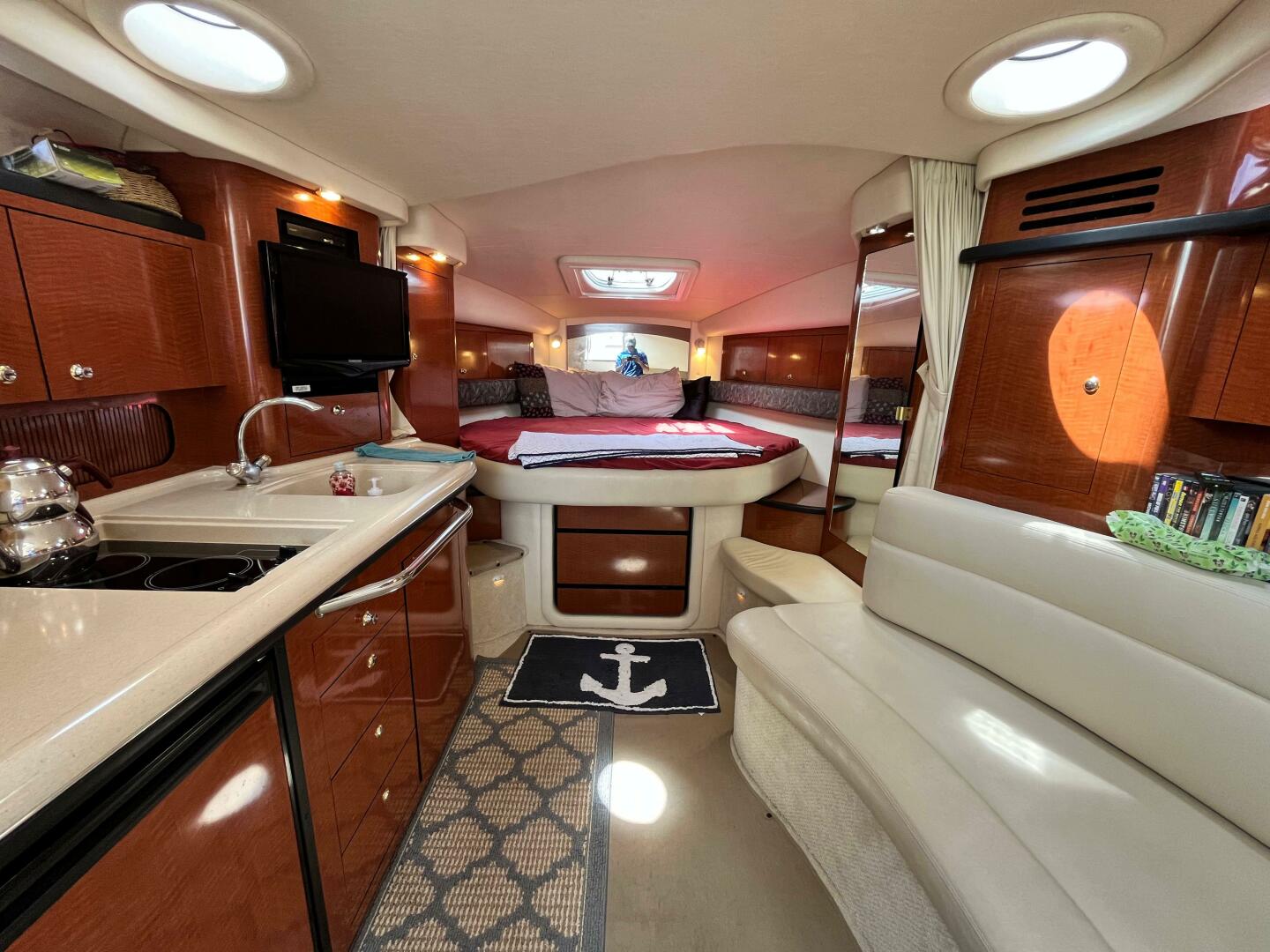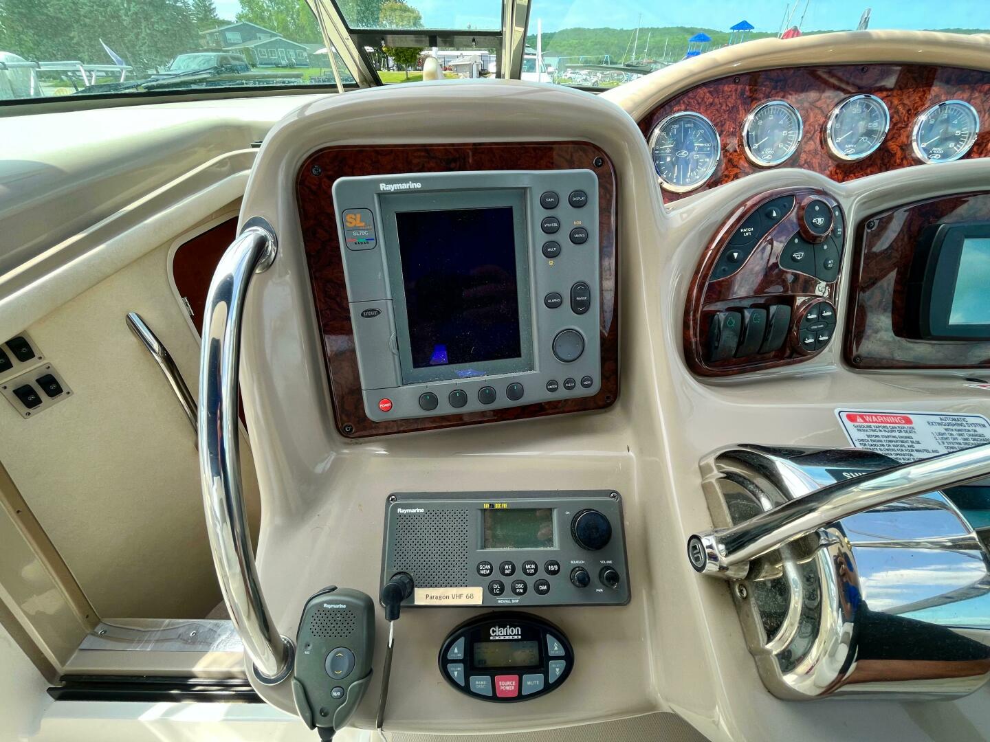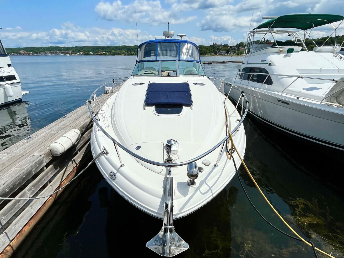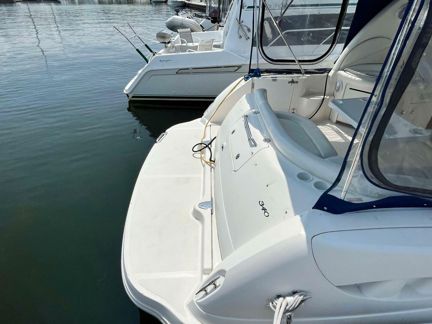 In the 340 Sundancer, high performance, comfort and quality are beautifully combined in one sleek cruising package. Powered by twin MX6.2L MPI MerCruiser V-drives, the 340 Sundancer is the ticket that will let you discover a whole new world of boating. A roomy, redesigned cockpit offers plenty of opportunity to relax, and her sleeping accommodations for six mean family and friends can go right along with you.