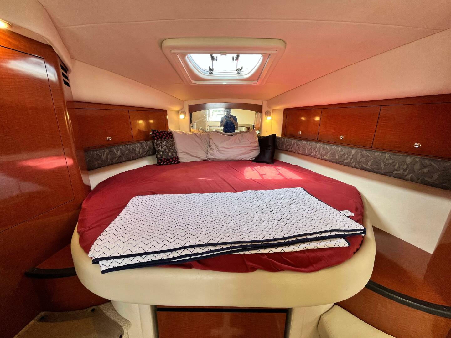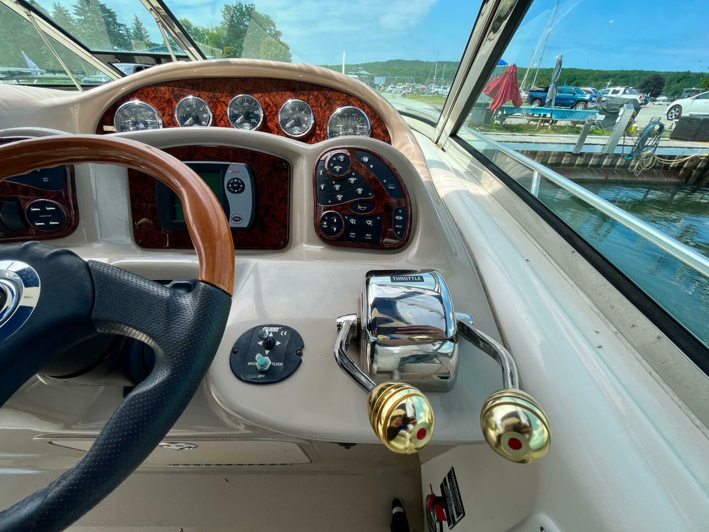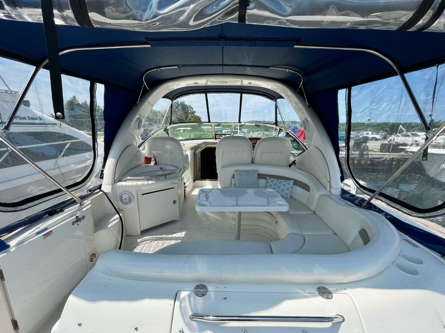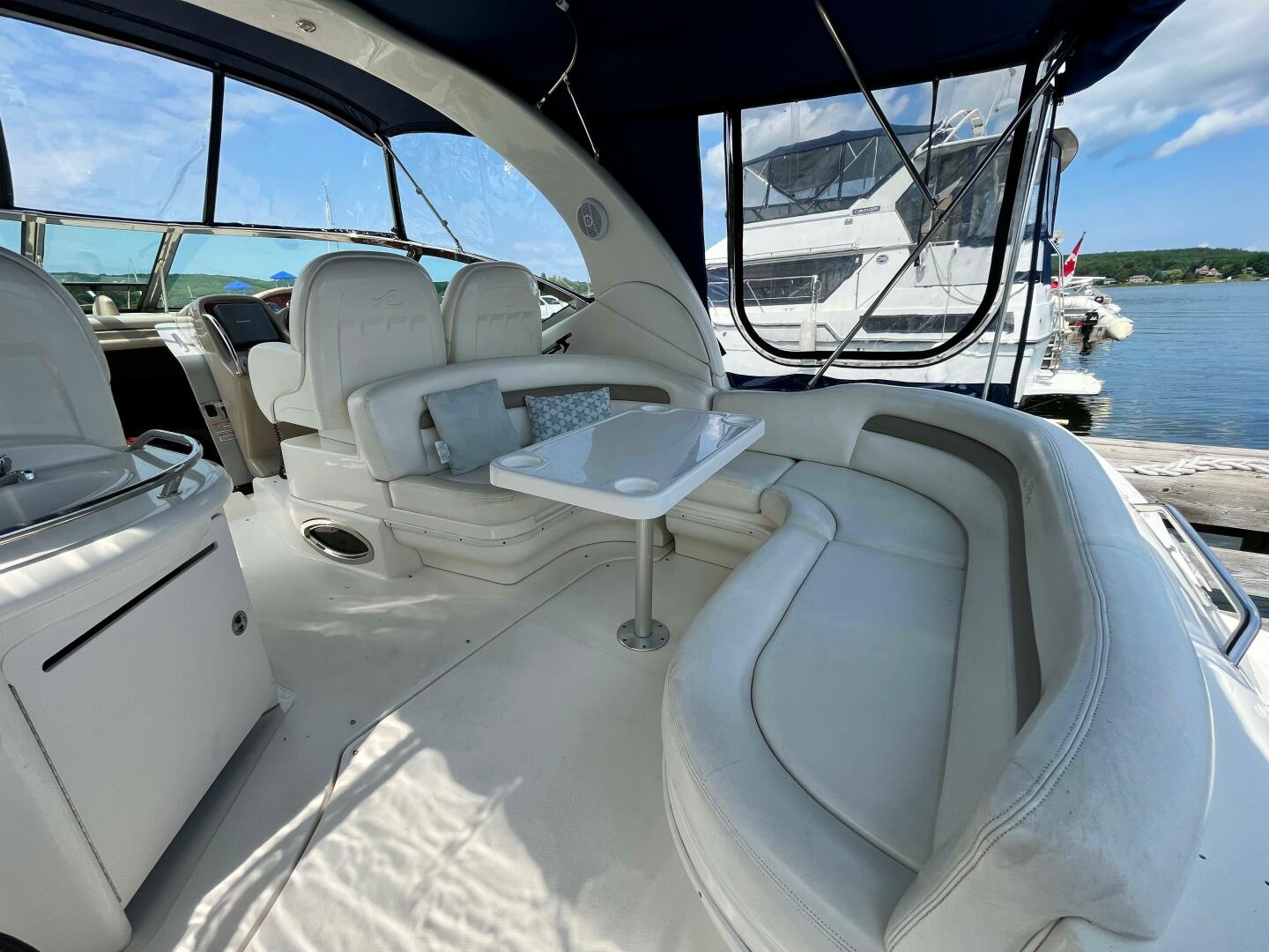 In the 340 Sundancer, high performance, comfort and quality are beautifully combined in one sleek cruising package. Powered by twin MX6.2L MPI MerCruiser V-drives, the 340 Sundancer is the ticket that will let you discover a whole new world of boating. A roomy, redesigned cockpit offers plenty of opportunity to relax, and her sleeping accommodations for six mean family and friends can go right along with you.