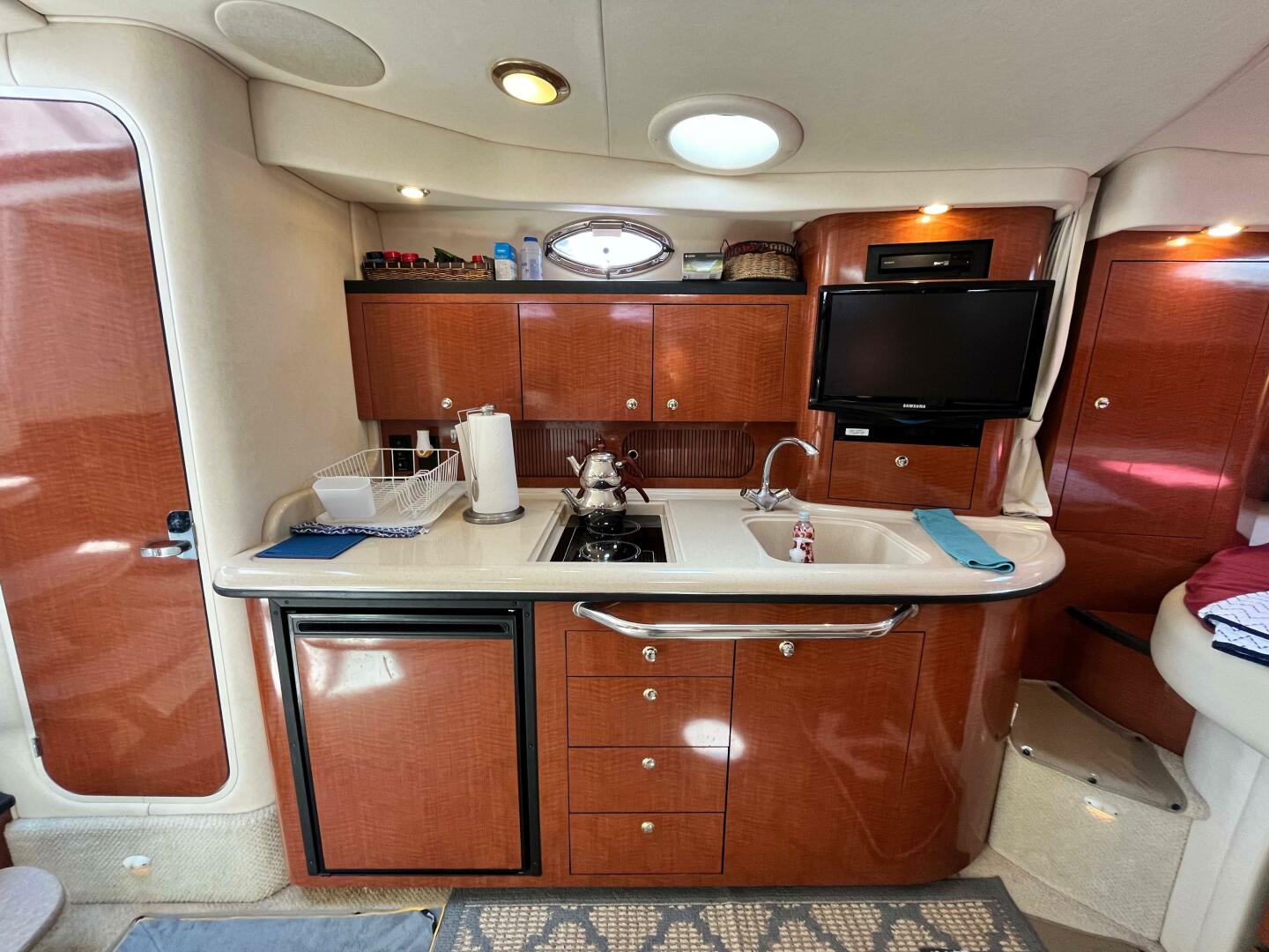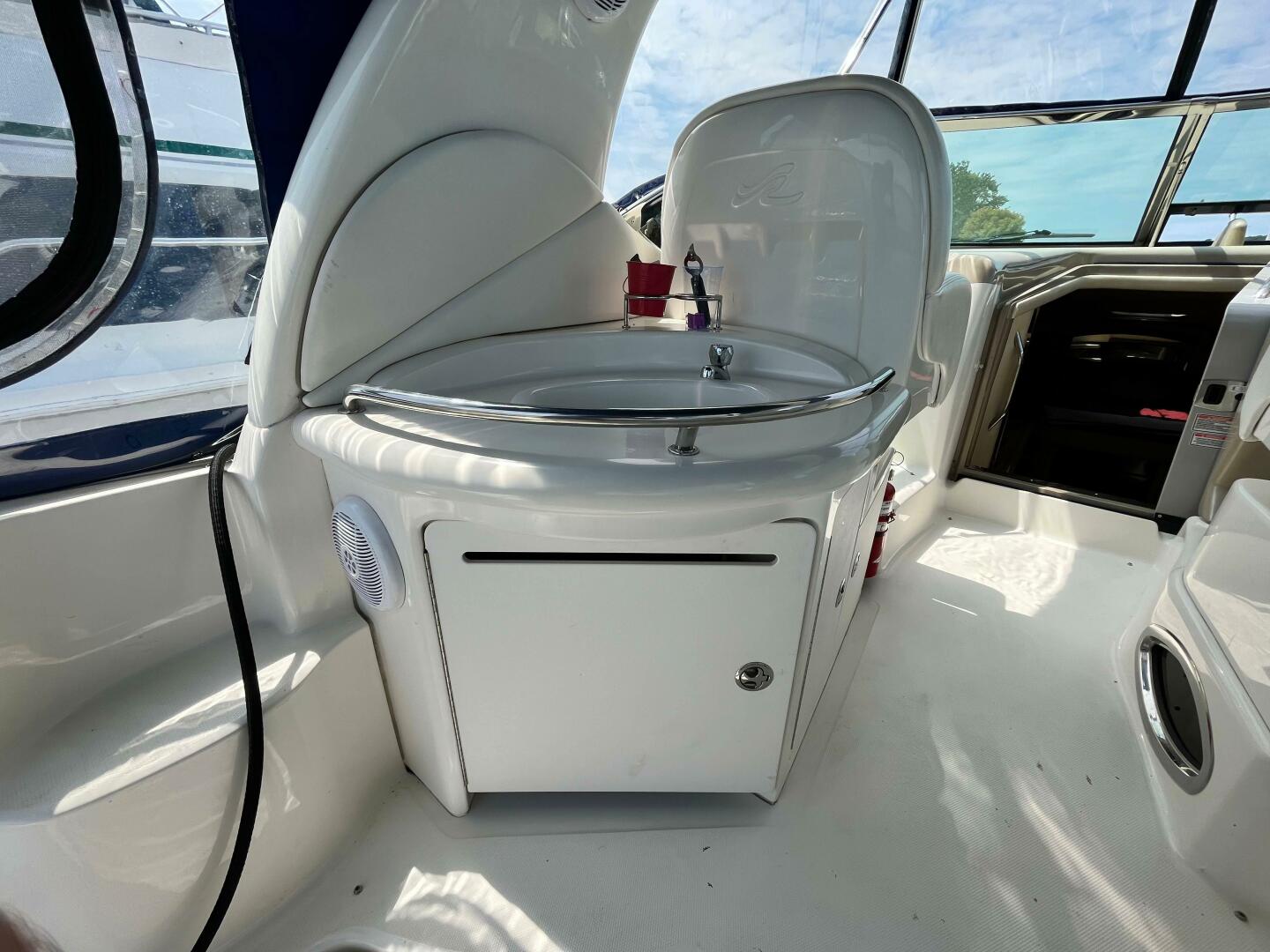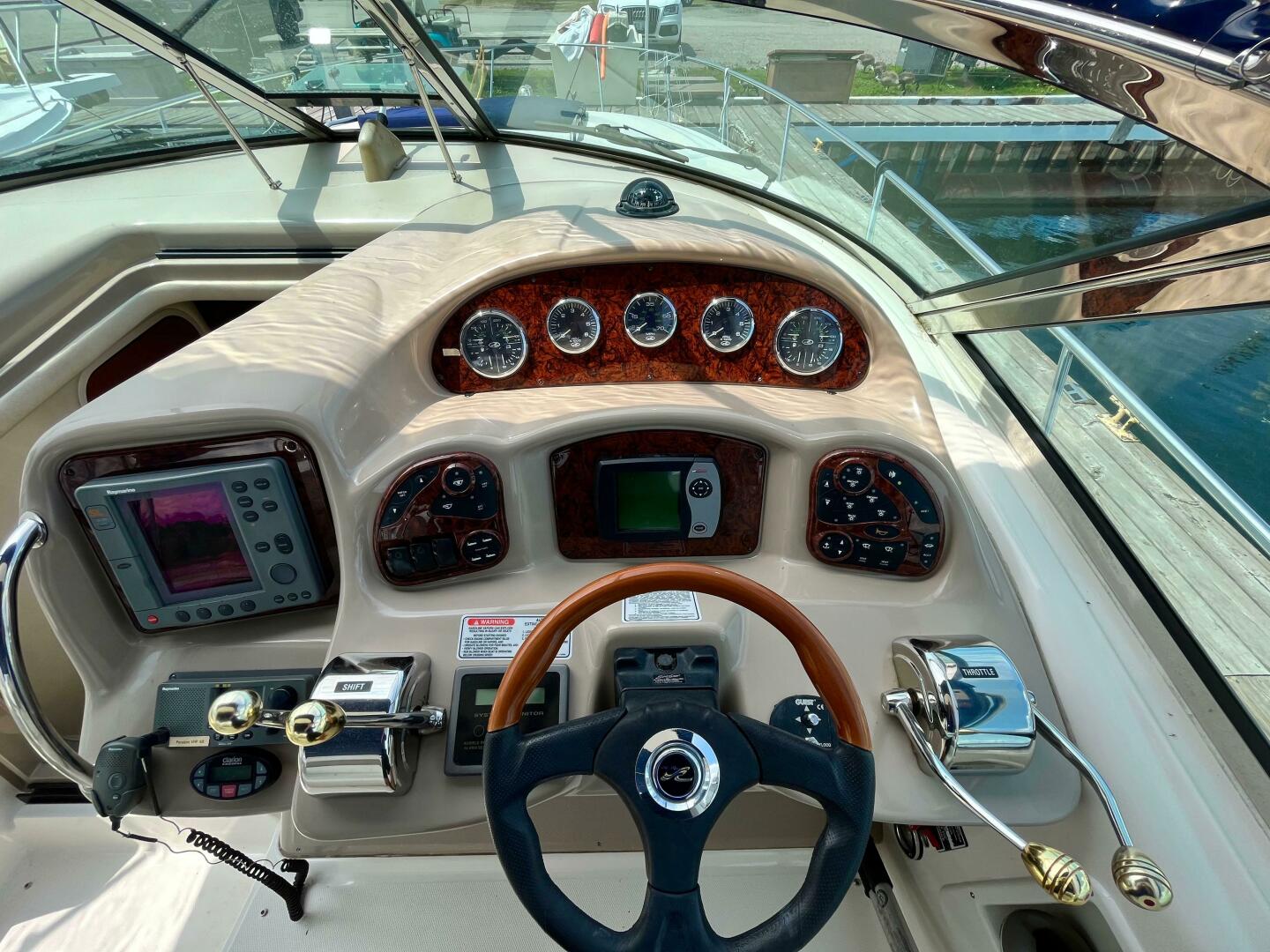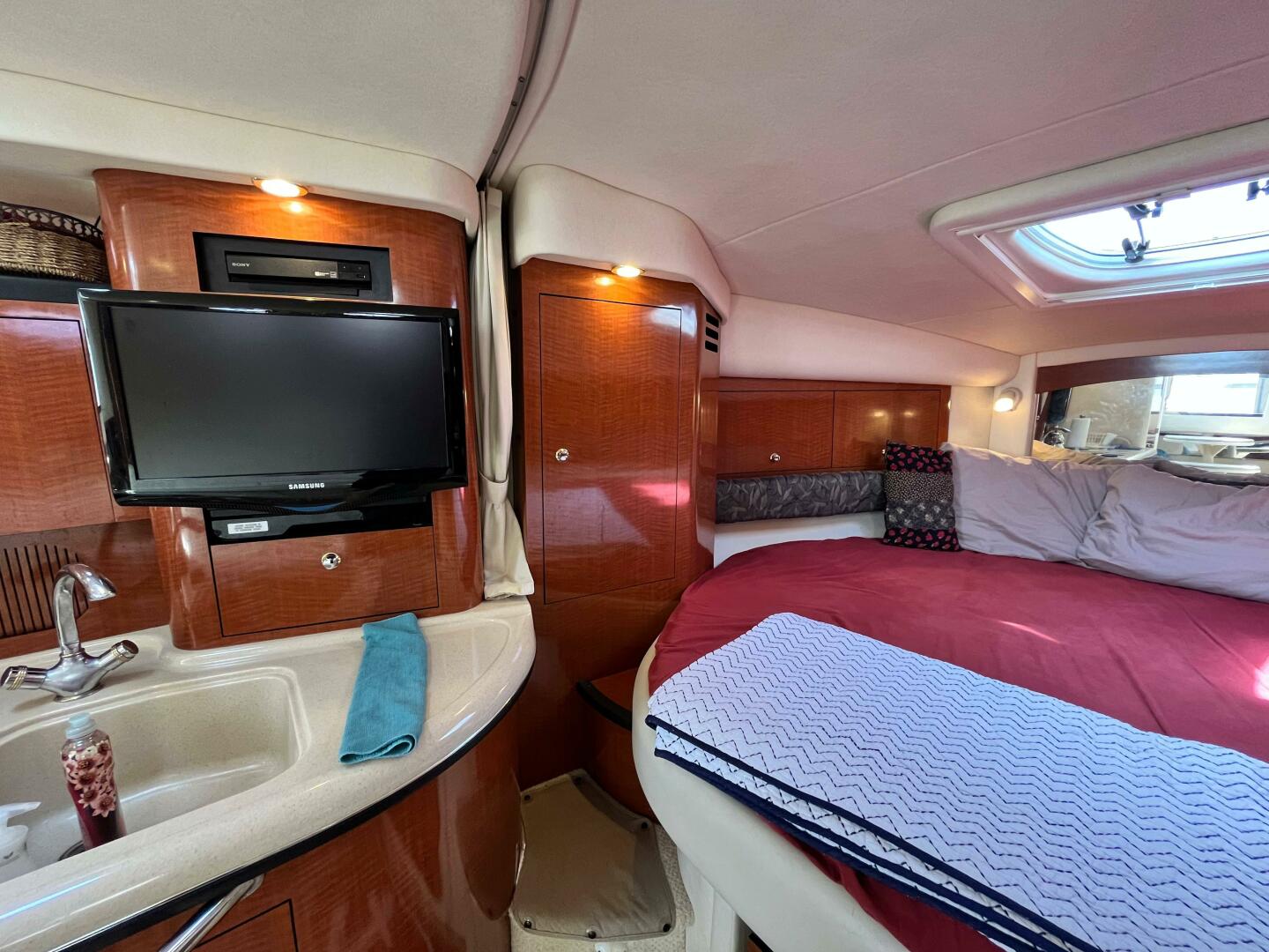 In the 340 Sundancer, high performance, comfort and quality are beautifully combined in one sleek cruising package. Powered by twin MX6.2L MPI MerCruiser V-drives, the 340 Sundancer is the ticket that will let you discover a whole new world of boating. A roomy, redesigned cockpit offers plenty of opportunity to relax, and her sleeping accommodations for six mean family and friends can go right along with you.