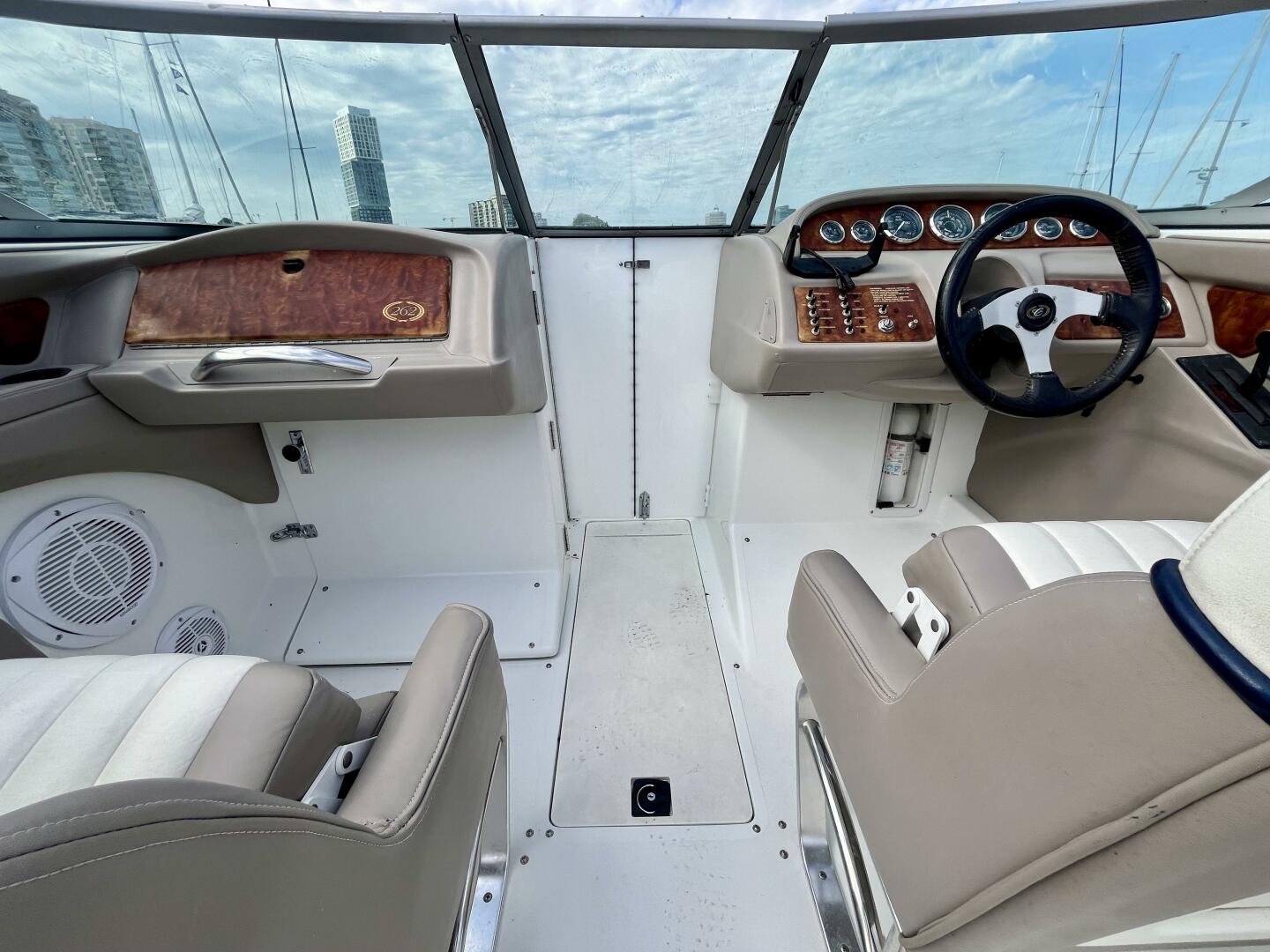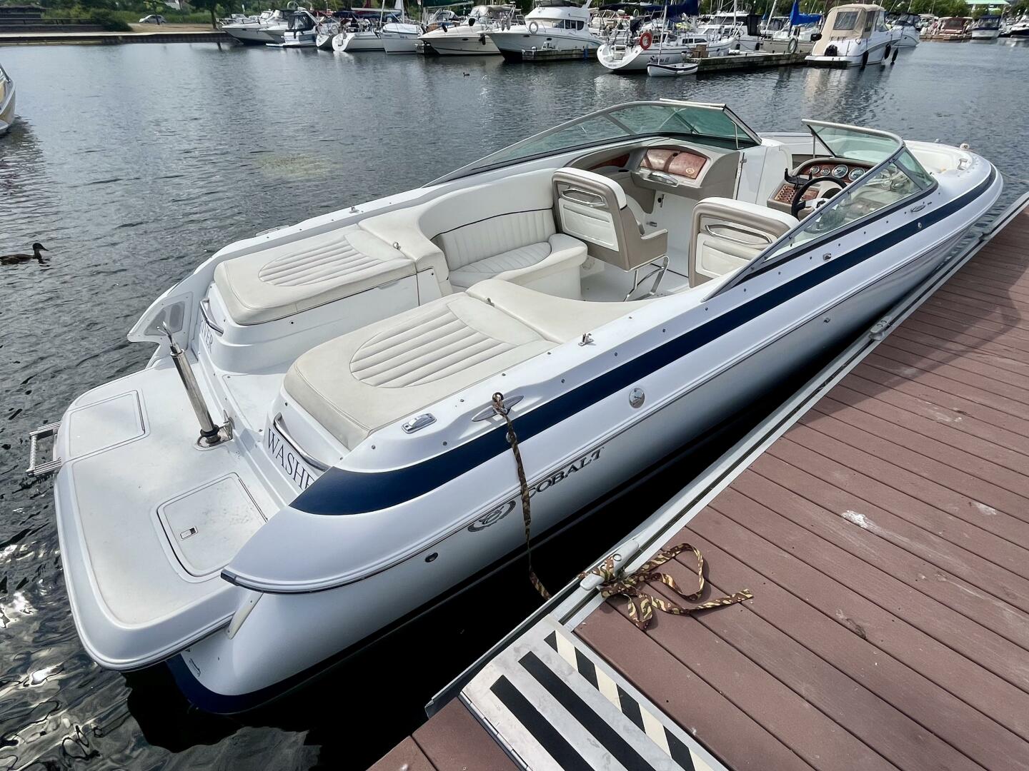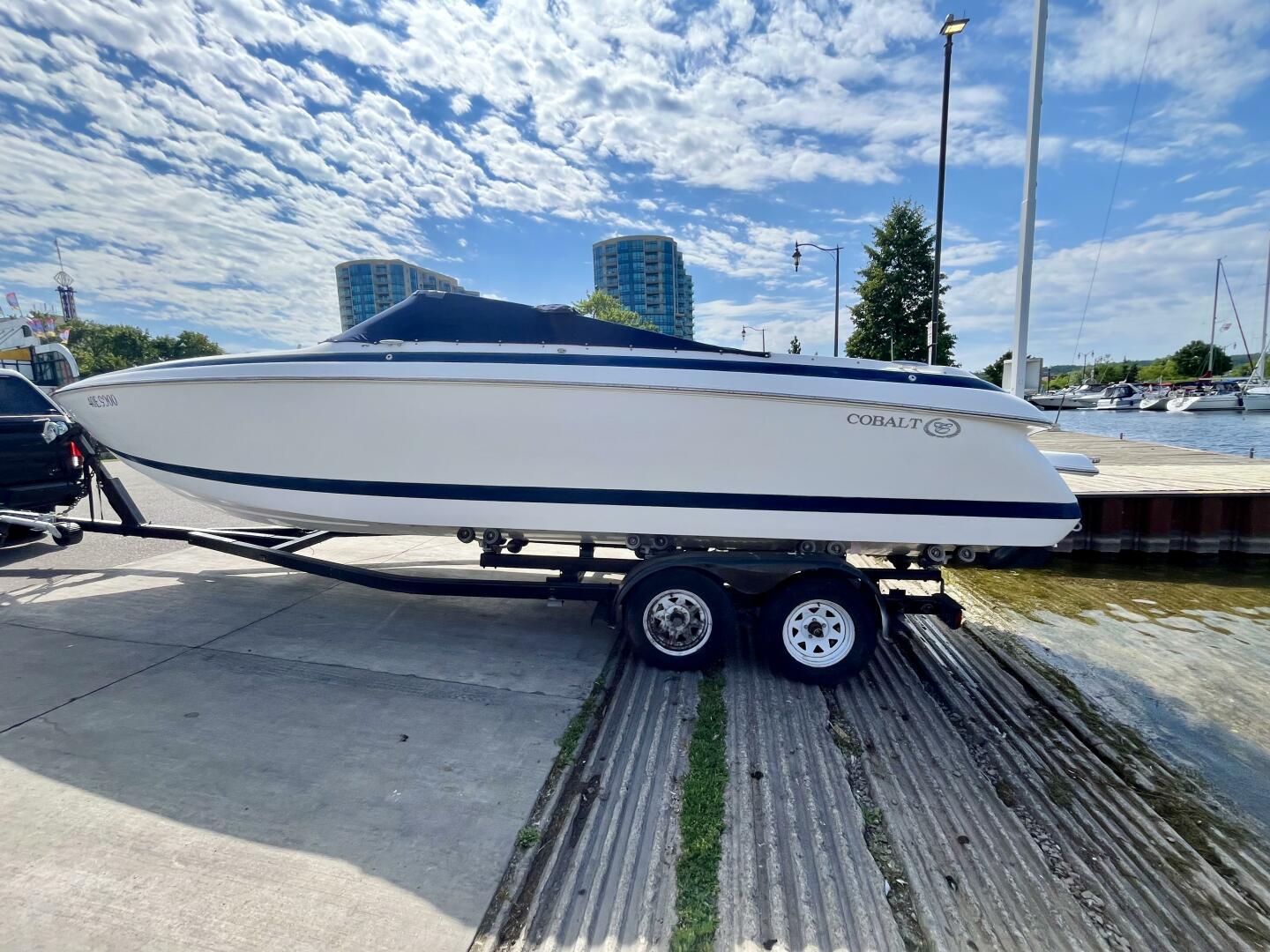 The Cobalt 262 is a radical blend of traditional Cobalt craftsmanship in the service of a bold, modern look. The 262 arrives with a sharper deadrise, reverse chines, and all-composite construction in an aggressive profile that suggests the performance of the 262's high-end power options. The Venetian lines of the 262 sweep in the style of the limousine speed boats common to European waters. Configured around a wrap-around lounge, the cockpit is roomy and comfortable. The head compartment hides beneath lustrous wood trim at the console. With a walk-through transom and teak extending to the cabin's edge, the activity platform has become an intrinsic part of the floor plan. The stunning Bimini Arch is optional.