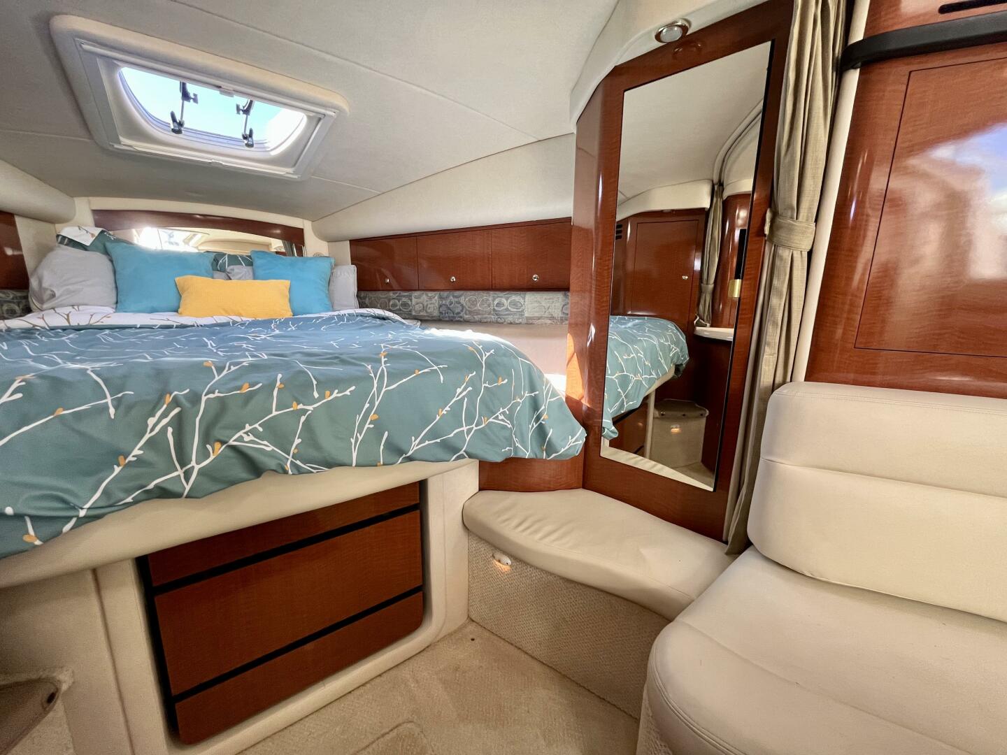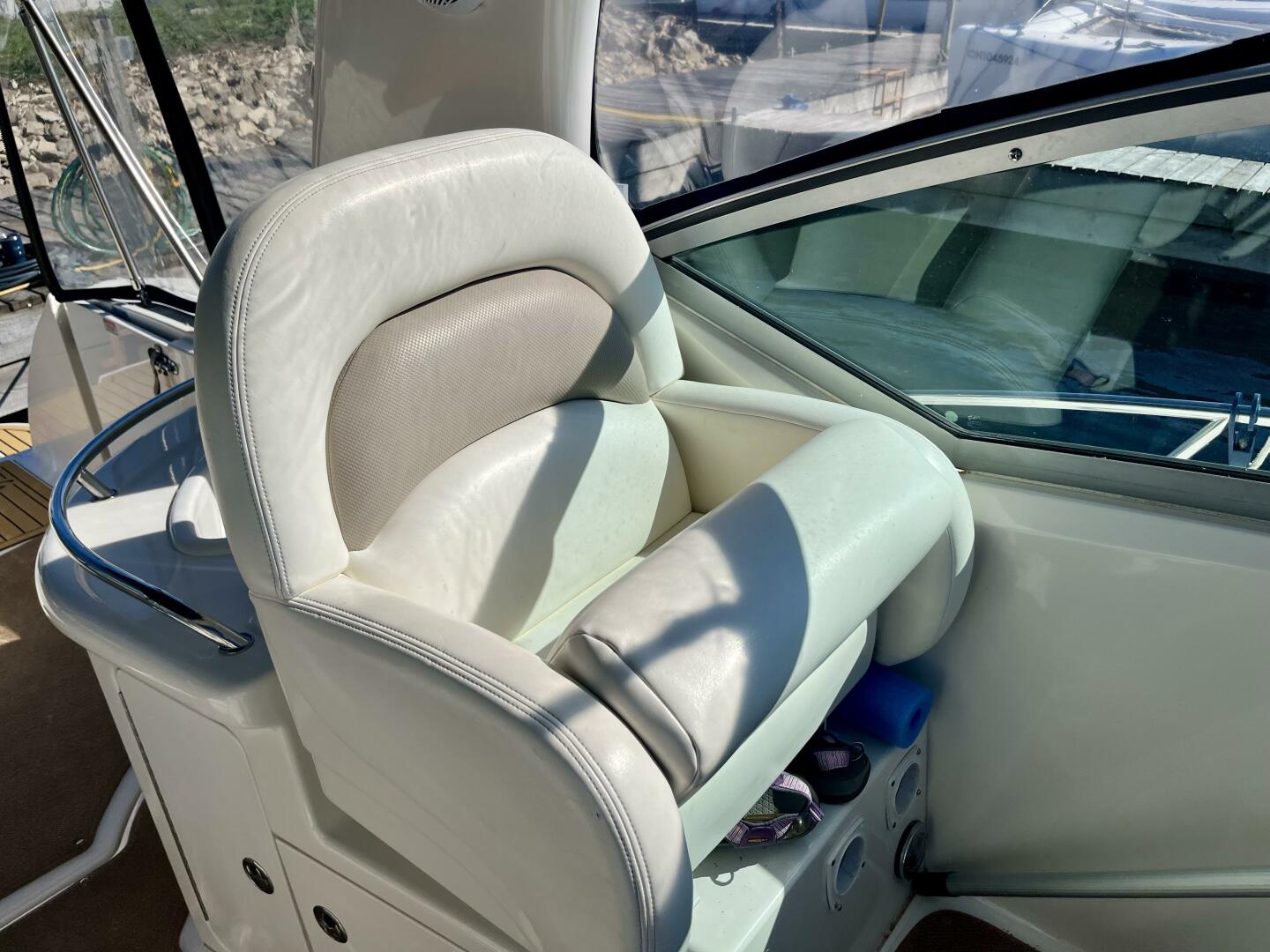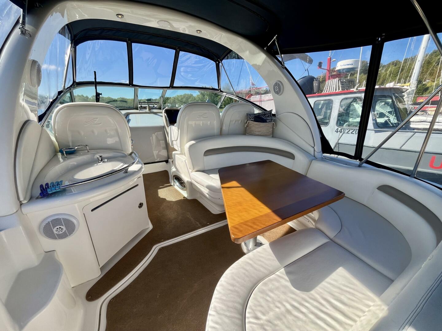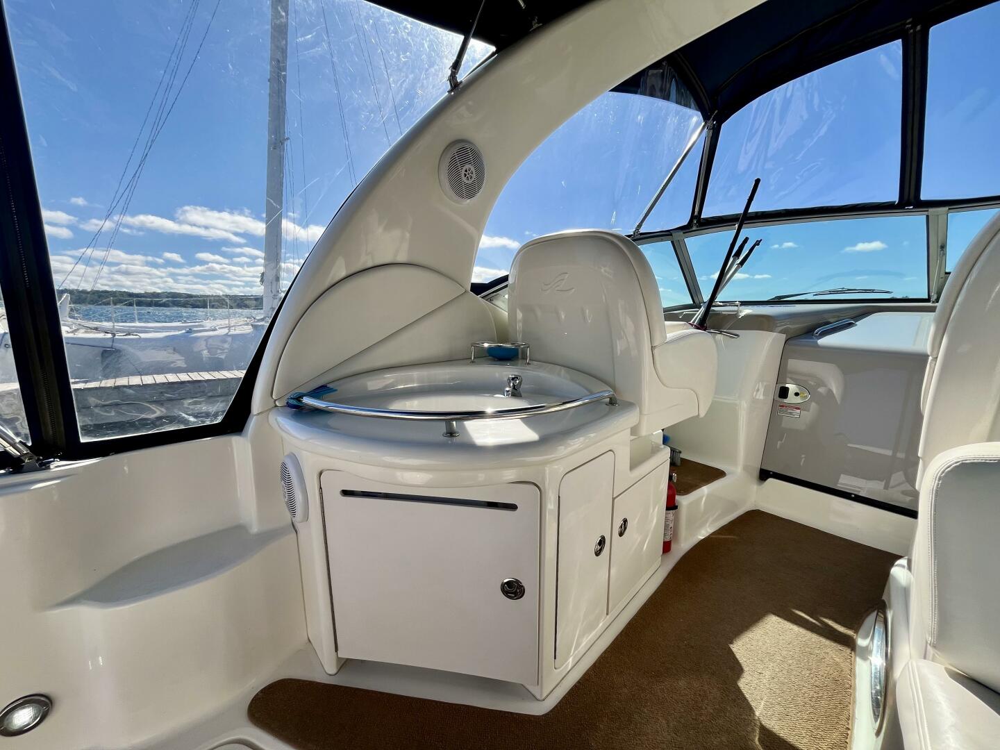 The 2004 Sea Ray 340 Sundancer packs luxury and performance into a perfectly sized express cruiser for weekend getaways or extended cruising. This example features the highly desirable engine upgrade to the twin 496 cubic inch or 8.1 litre MerCruisers providing a whopping 740 horsepower making light work out of propelling the Sea Ray up to speeds about 30 knots (56 kph) while widening the smiles of it's passengers. The enjoyment continues throughout the spacious cockpit with seating for six, an integrated swim platform with Sea Decking for easy water access, a wet bar with fridge and waterside dining table under a full enclosure while music fills the space from the surround stereo. Below deck, you've got a Queen island bed up front, a double in the aft and another convertible double in the salon providing comfortable accommodations for 6 overnight. There's a full galley with a Corian countertop, microwave, stove and another fridge all across from the Head with hot water shower. This Sea Ray 340 Sundancer is perfect for weekend getaways or family cruises with 225 gallons of fuel for long range, air conditioning and onboard generator for comfort, premium electronics, like smart craft diagnostics, radar and upgraded touch screen chartplotter, even colour matched dock lines... she is reliable, stylish, and ready for adventure!