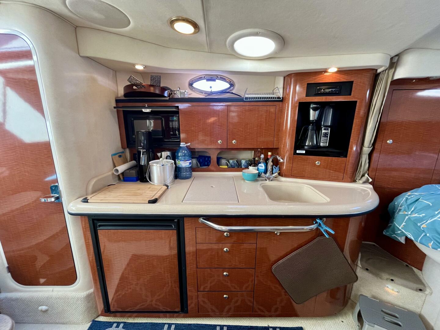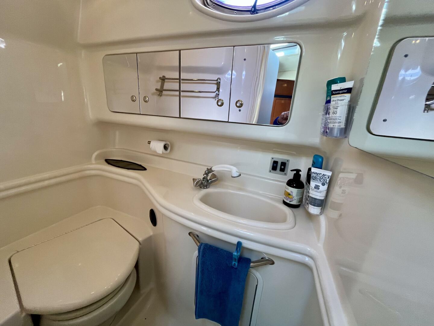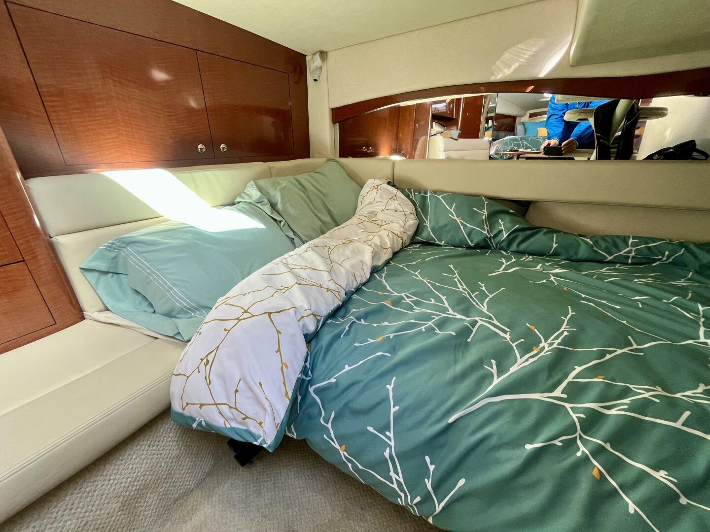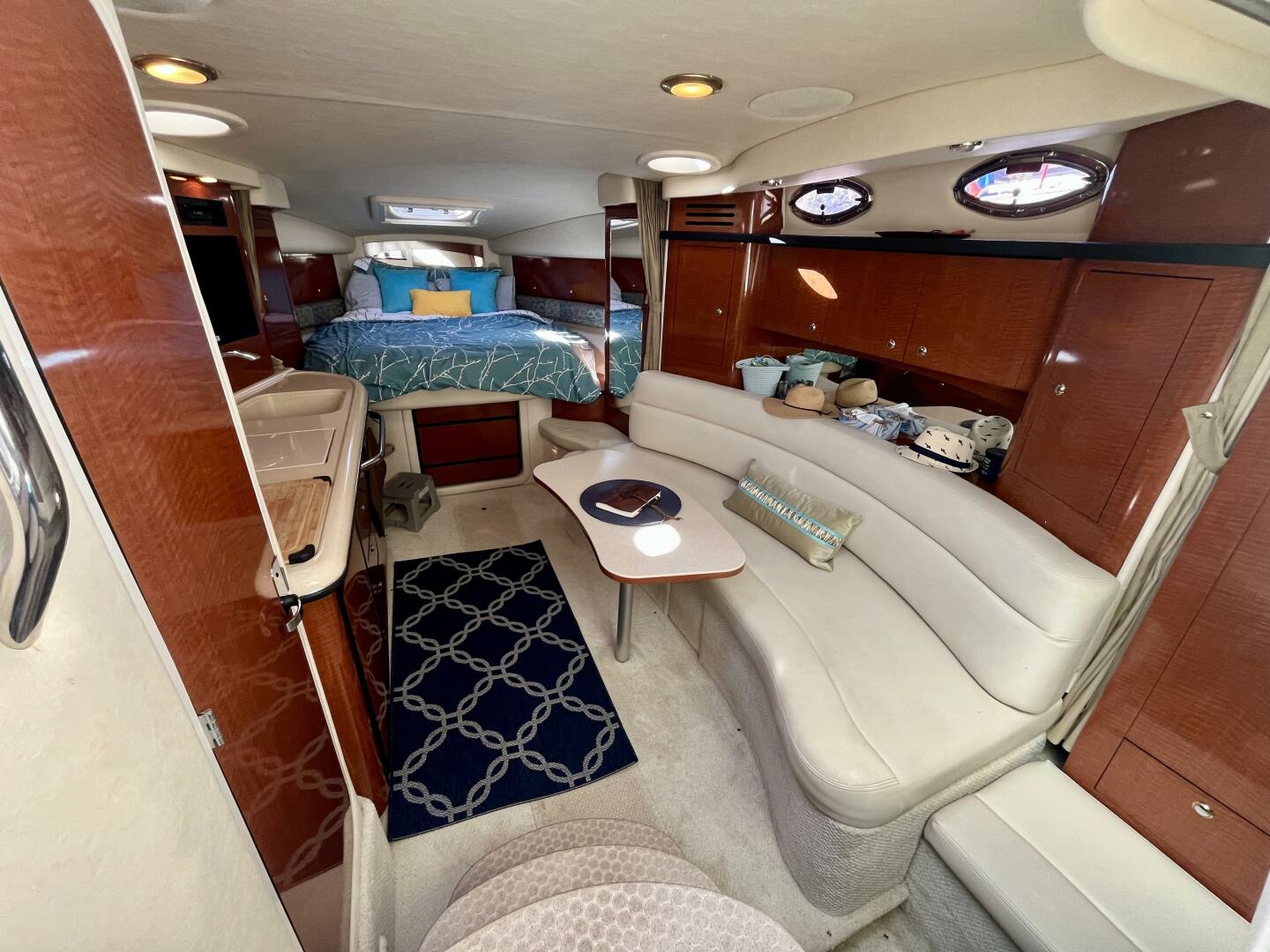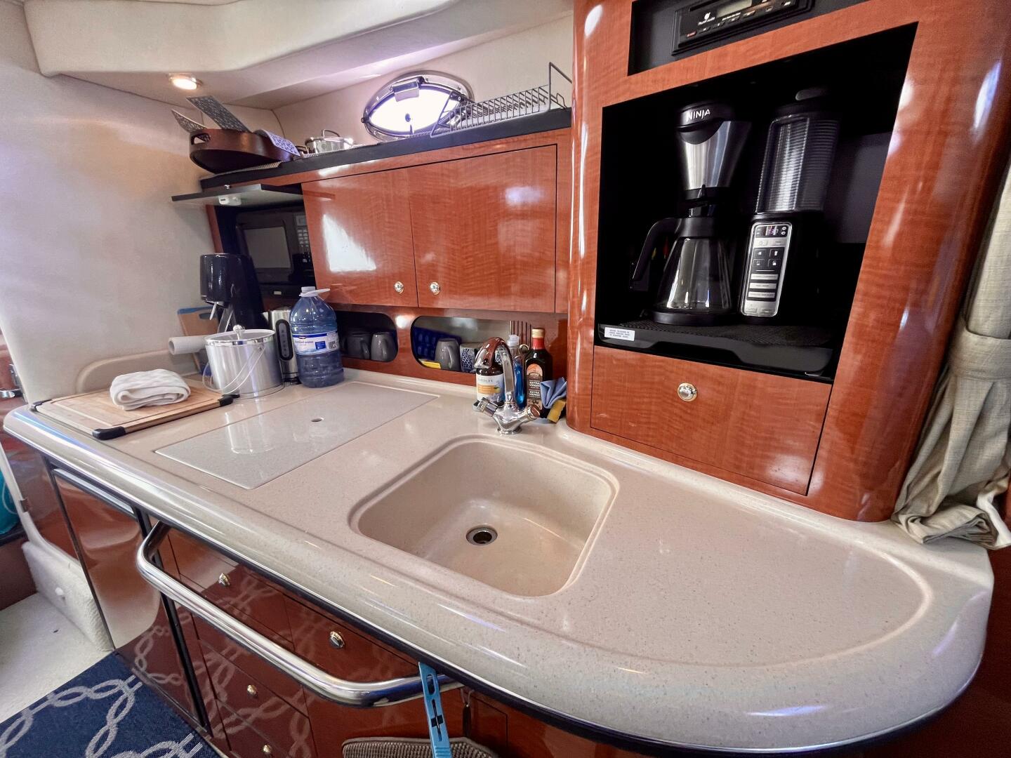 The 2004 Sea Ray 340 Sundancer packs luxury and performance into a perfectly sized express cruiser for weekend getaways or extended cruising. This example features the highly desirable engine upgrade to the twin 496 cubic inch or 8.1 litre MerCruisers providing a whopping 740 horsepower making light work out of propelling the Sea Ray up to speeds about 30 knots (56 kph) while widening the smiles of it's passengers. The enjoyment continues throughout the spacious cockpit with seating for six, an integrated swim platform with Sea Decking for easy water access, a wet bar with fridge and waterside dining table under a full enclosure while music fills the space from the surround stereo. Below deck, you've got a Queen island bed up front, a double in the aft and another convertible double in the salon providing comfortable accommodations for 6 overnight. There's a full galley with a Corian countertop, microwave, stove and another fridge all across from the Head with hot water shower. This Sea Ray 340 Sundancer is perfect for weekend getaways or family cruises with 225 gallons of fuel for long range, air conditioning and onboard generator for comfort, premium electronics, like smart craft diagnostics, radar and upgraded touch screen chartplotter, even colour matched dock lines... she is reliable, stylish, and ready for adventure!