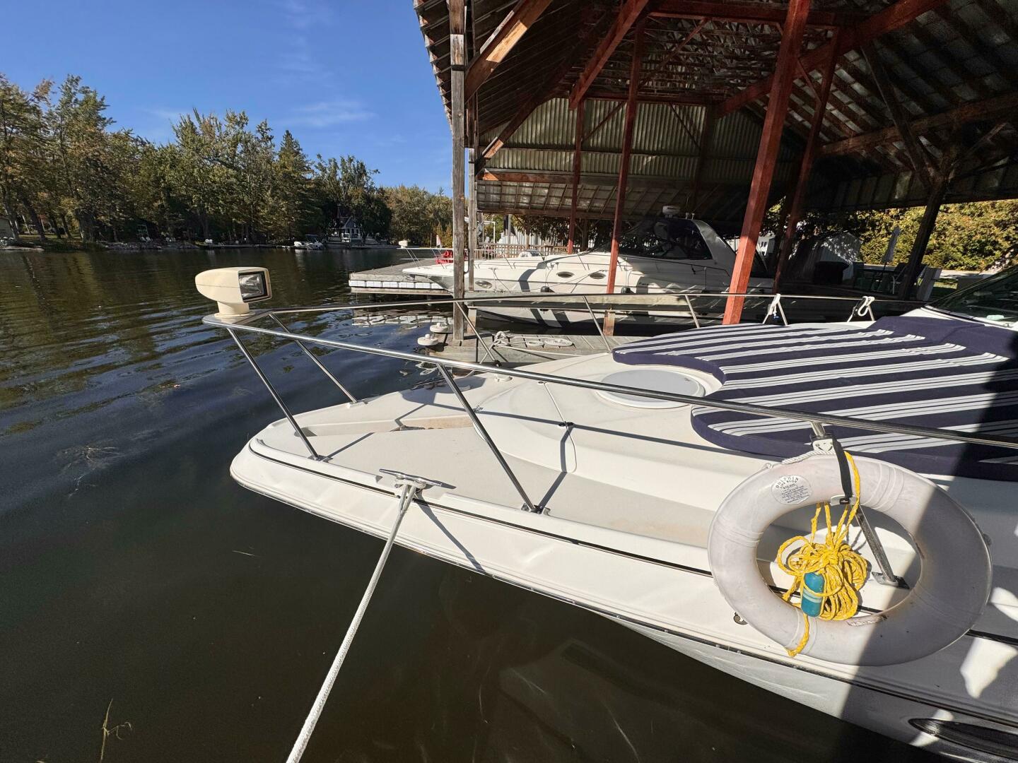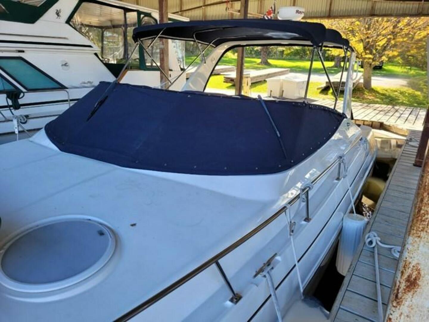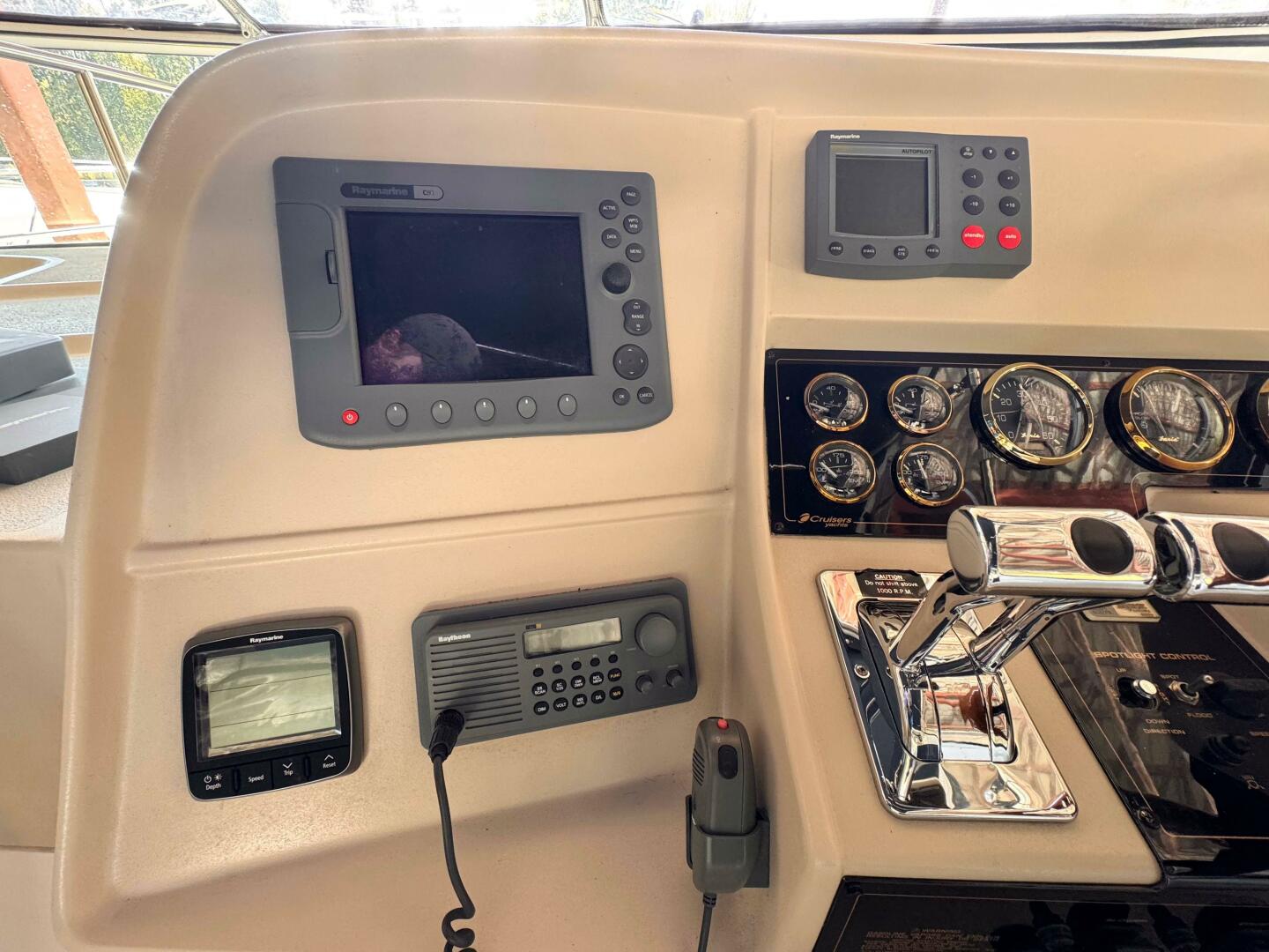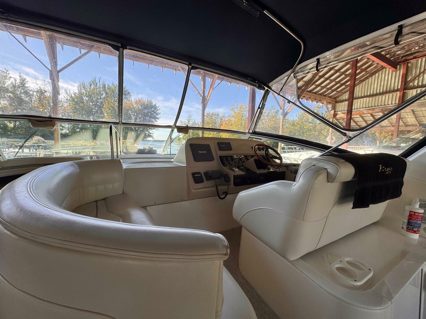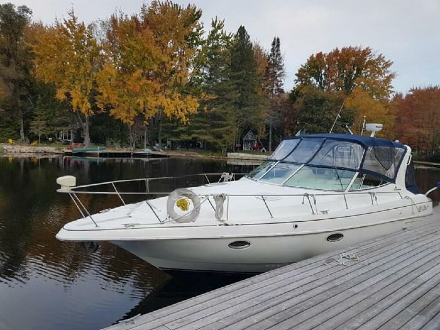 The Cruisers Yachts 3575 Esprit is a spacious express cruiser designed for comfortable weekends and extended cruising on the Great Lakes. With her wide 13' beam and thoughtful layout, she offers an open cockpit for entertaining, a bright interior with three sleeping areas, and the performance of twin MerCruiser 7.4L MPI V8 engines (approx. 800 hrs). Add in the bow thruster, generator, and Raymarine electronics, and this freshwater boat is well-equipped for stress-free docking, extended trips, and all-weather boating.