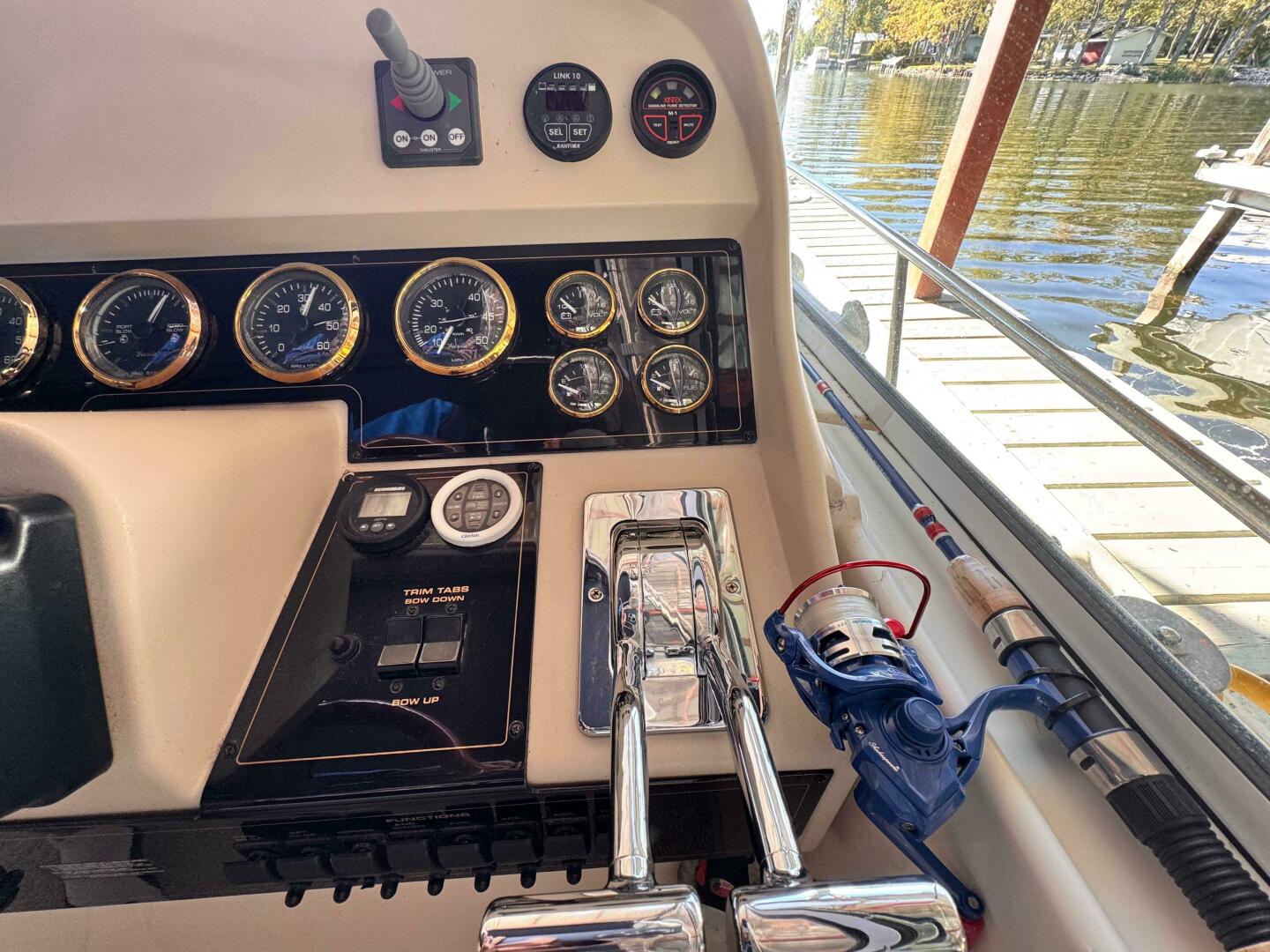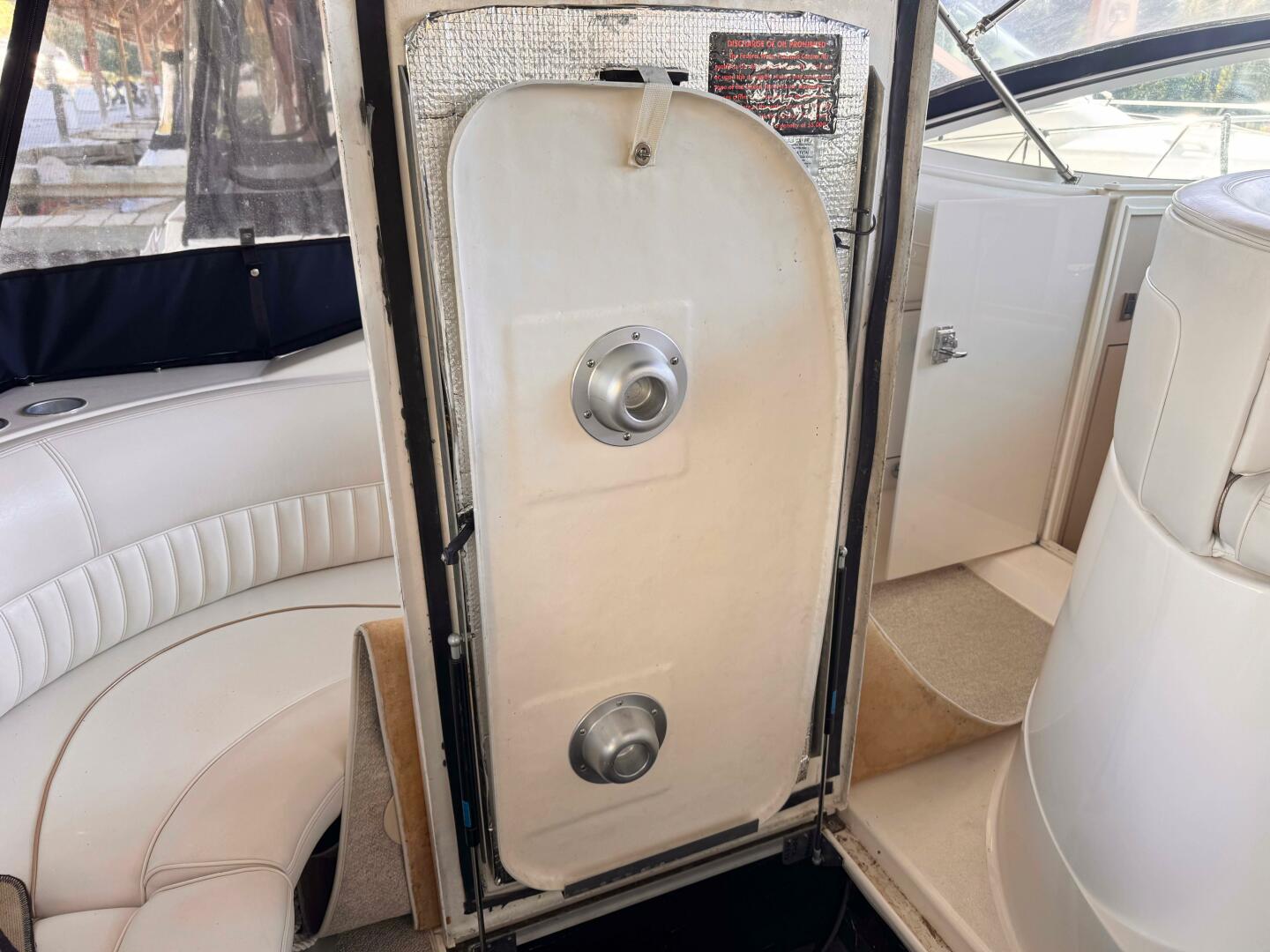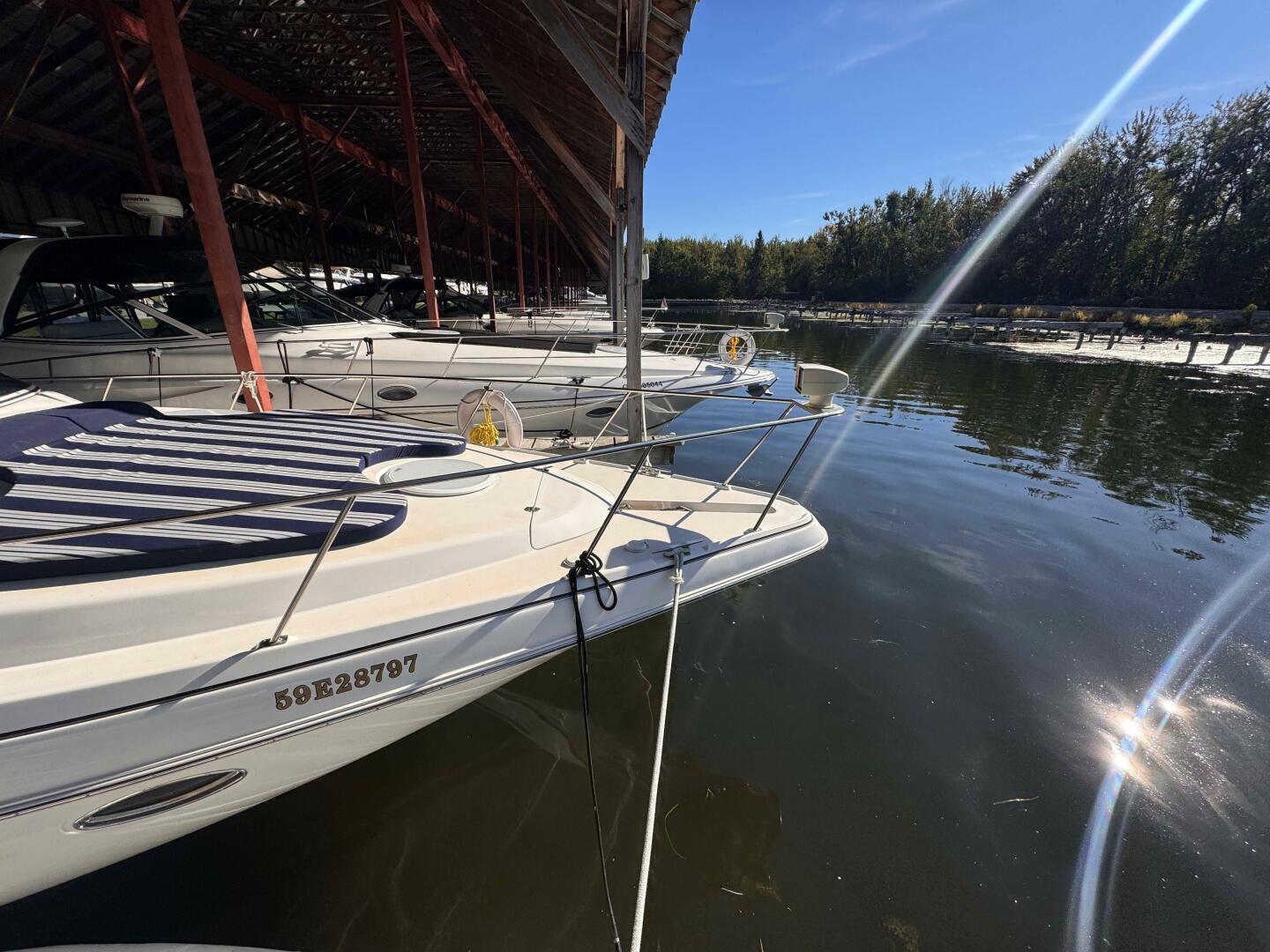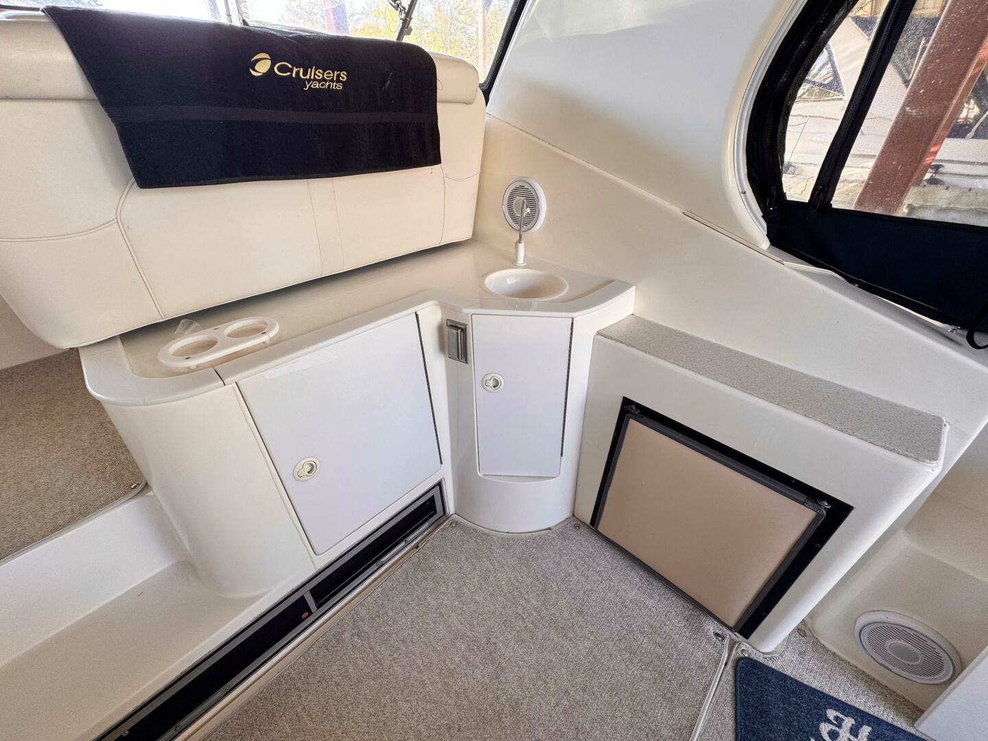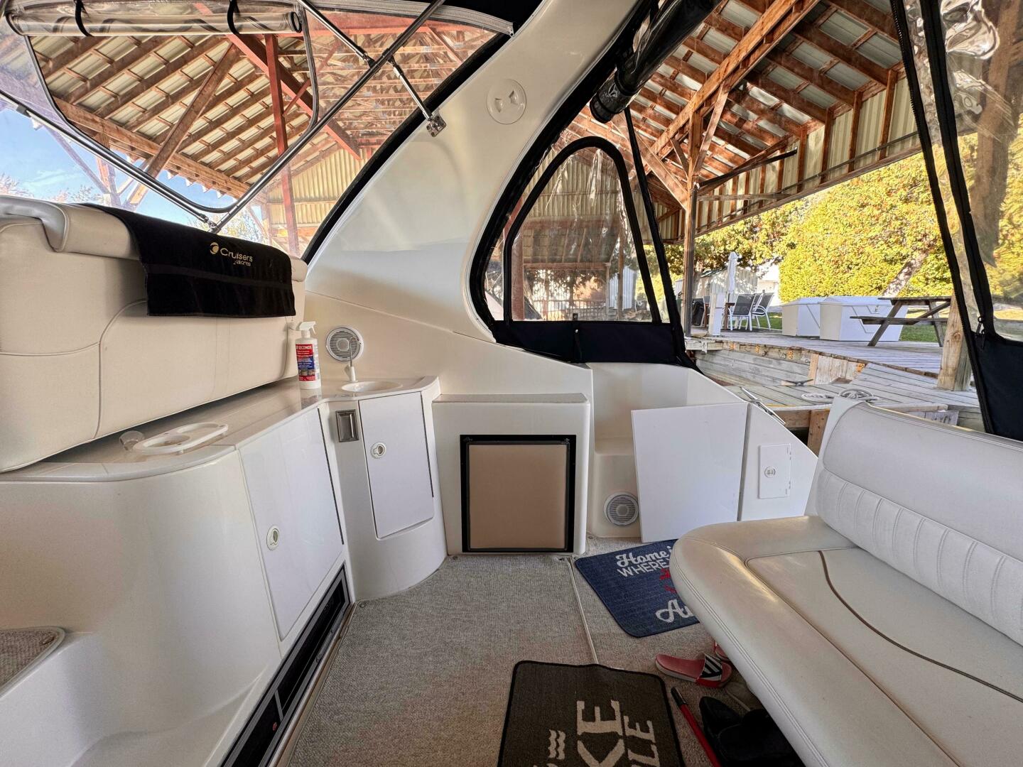 The Cruisers Yachts 3575 Esprit is a spacious express cruiser designed for comfortable weekends and extended cruising on the Great Lakes. With her wide 13' beam and thoughtful layout, she offers an open cockpit for entertaining, a bright interior with three sleeping areas, and the performance of twin MerCruiser 7.4L MPI V8 engines (approx. 800 hrs). Add in the bow thruster, generator, and Raymarine electronics, and this freshwater boat is well-equipped for stress-free docking, extended trips, and all-weather boating.