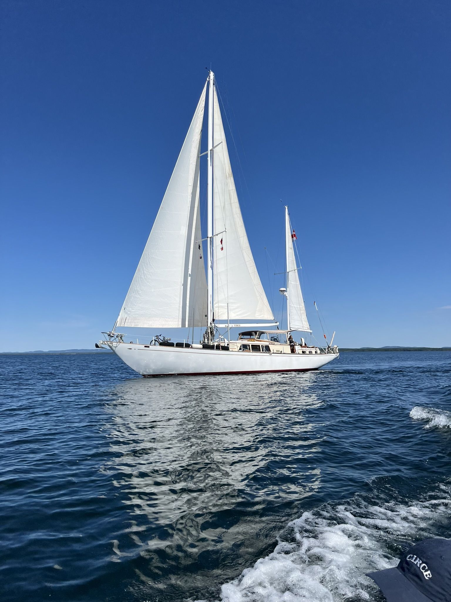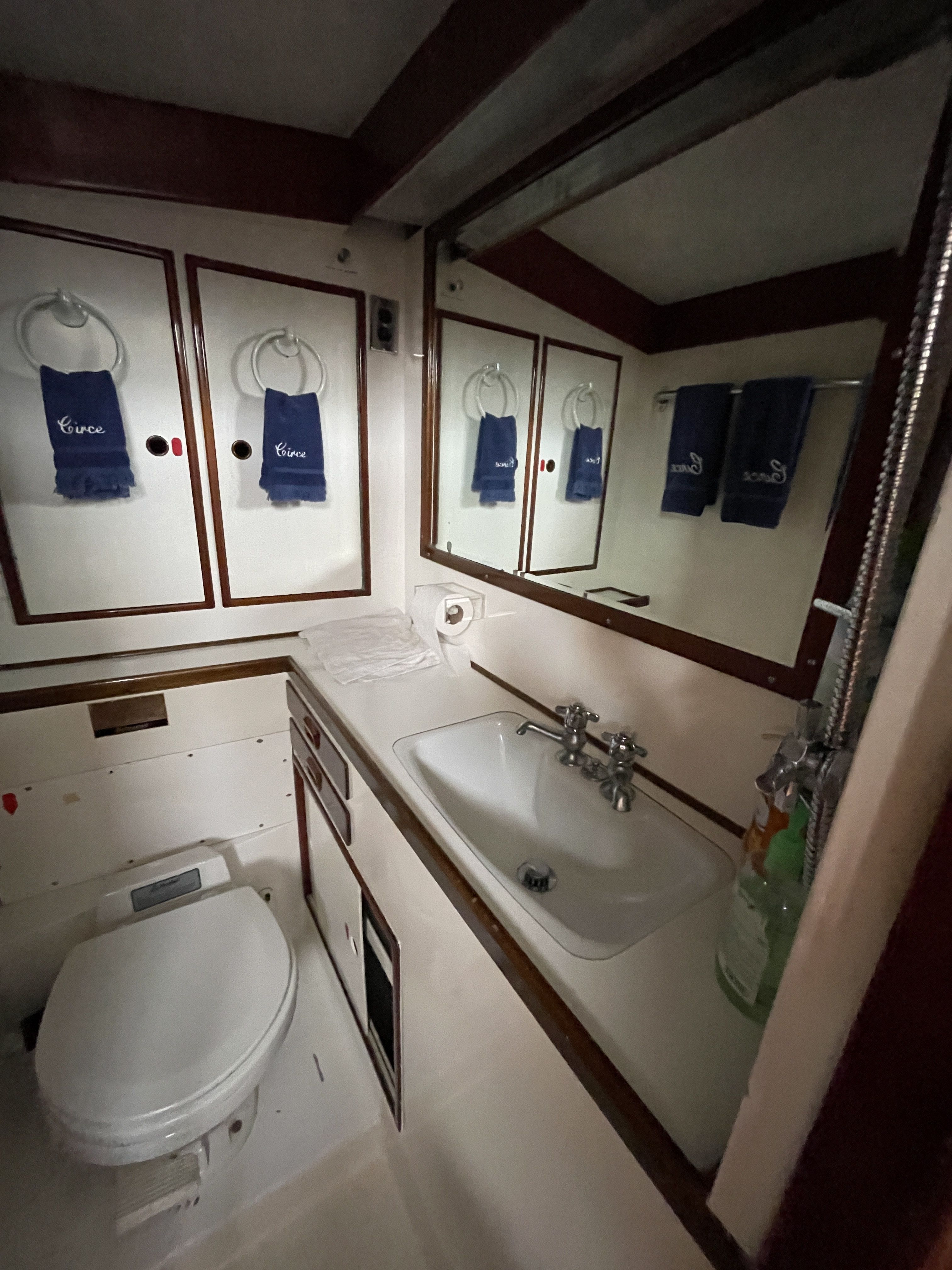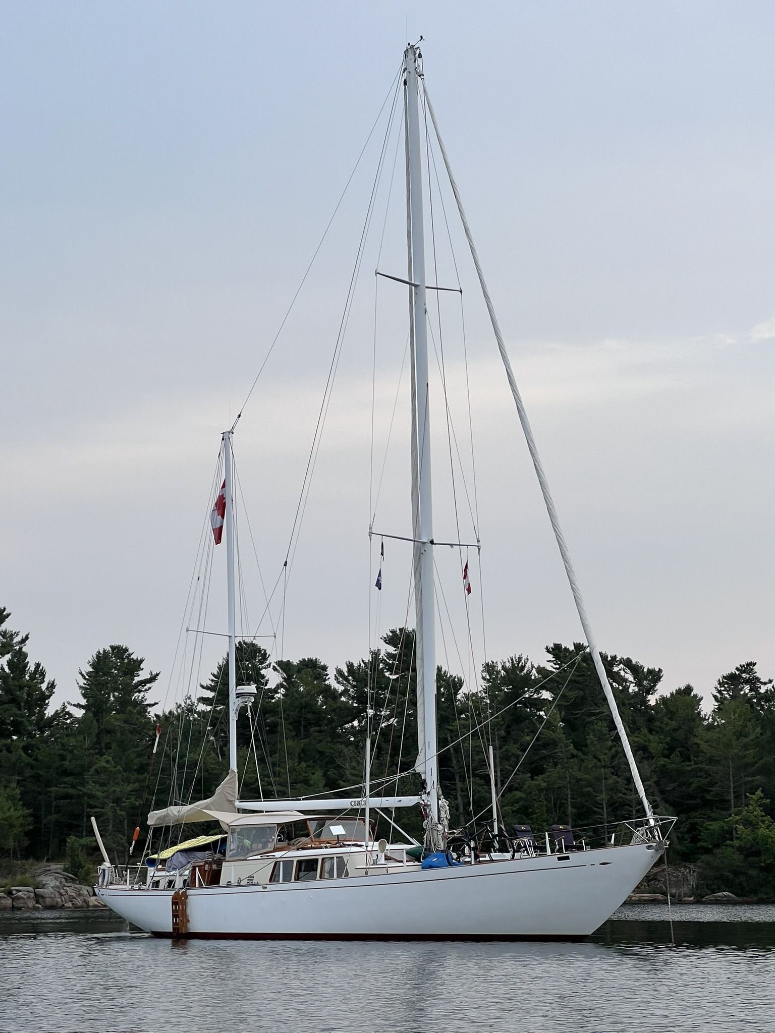 This 1966 example, Circe, has spent the last 25 years in freshwater on the Great Lakes and presents as a well kept, thoughtfully updated yacht. She is powered by a 1990 Cummins 6BT 5.9 turbo diesel rated at 210 HP and benefits from a bow thruster, a full standing headroom walk in engine room, Northern Lights 8kw generator, recent Raymarine electronics, mainsail rebuild in 2024, new Harken mainsail furling in 2024, mast overhauls in 2023 and 2024, Dyneema running rigging in 2023 and 2024, hard dodger with canvas bimini, teak laid decks, and an inviting raised saloon with three private cabins and three heads.